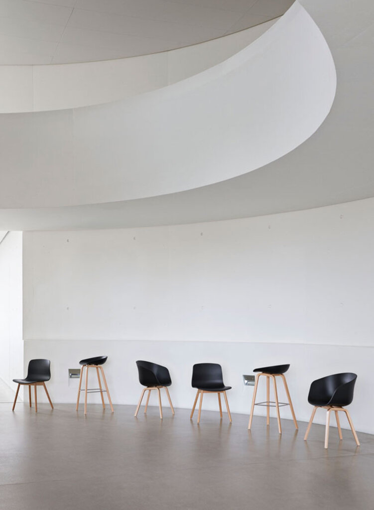 About a Chair has an open frame construction in bent steel that brings added lightness to the intuitive design. The shell is round and upright at the same time and combines a high degree of seating comfort with an inviting expression. The open frame is available in stainless steel as well as a black or white powder-coating, which lets you design contrast-rich colour combinations of frame and seat. The many possible combinations of frame, shell and colours make About a Chair an ultra-flexible and versatile chair that celebrates individuality.