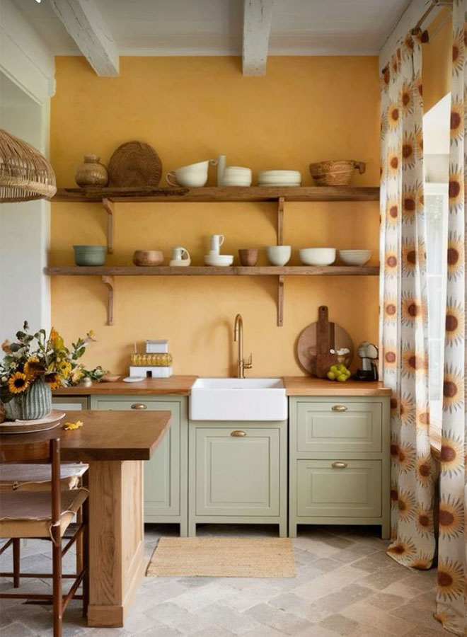 This warm, golden yellow is your dose of interior sunshine. A striped tablecloth, a bright dining chair, or a framed print in this shade makes the room feel instantly happy. It’s a small detail that does a lot of heavy lifting.
