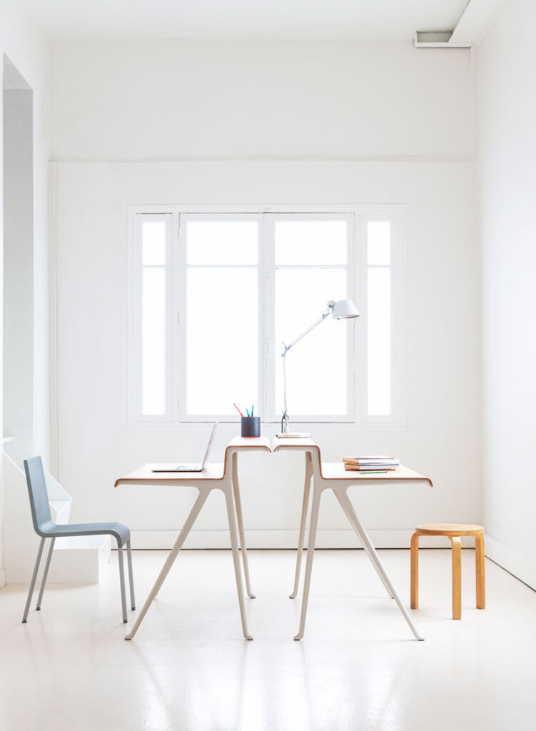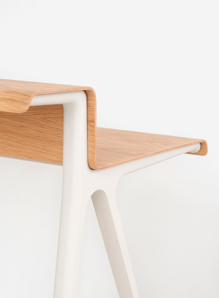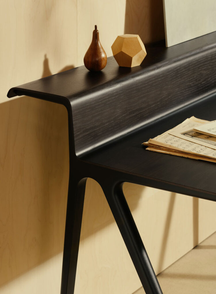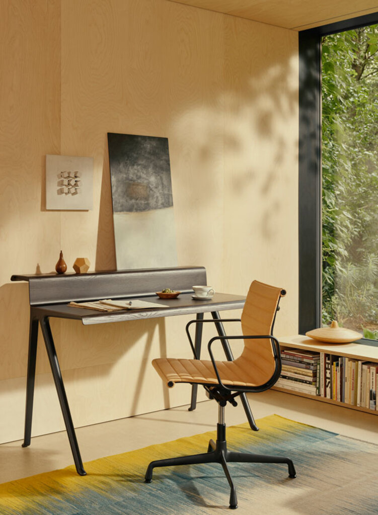 In addition to his design projects, Ronan Bouroullec is also an artist, producing intricate drawings in which he hand-draws intuitive sequences of lines with a Japanese felt tip brush. The contours of Courier can be read as an expression of this artistic approach, but also testify to Bouroullec's flair for form and composition as well as his technical expertise. The desk effortlessly combines two high-quality materials, wood and aluminium, to create a distinctive yet subtle design.