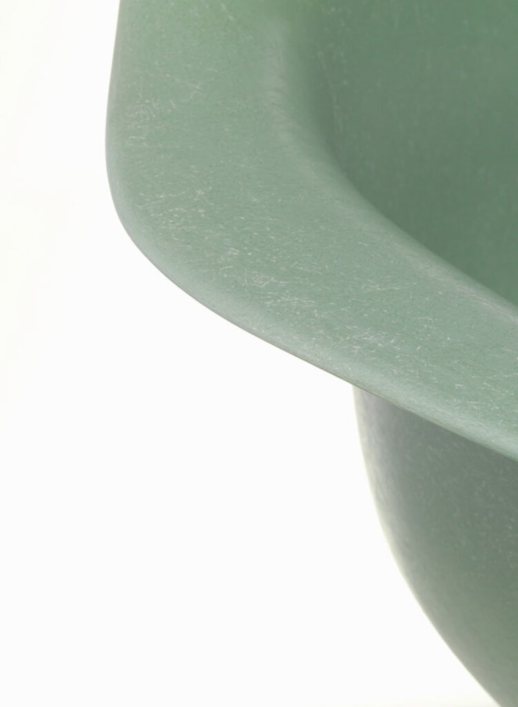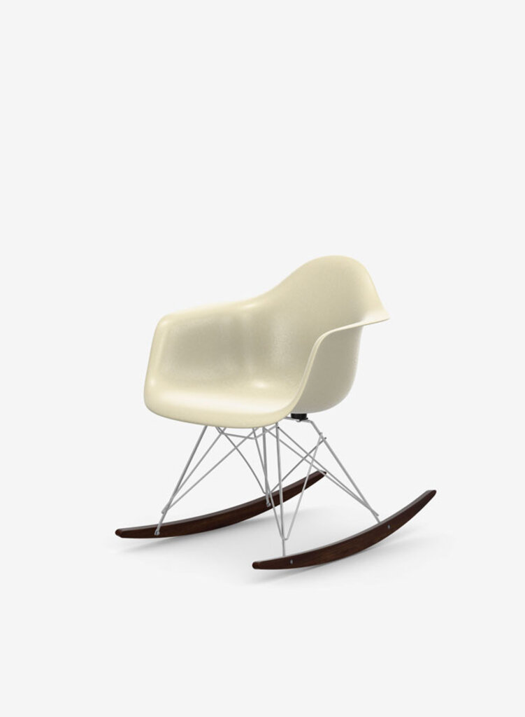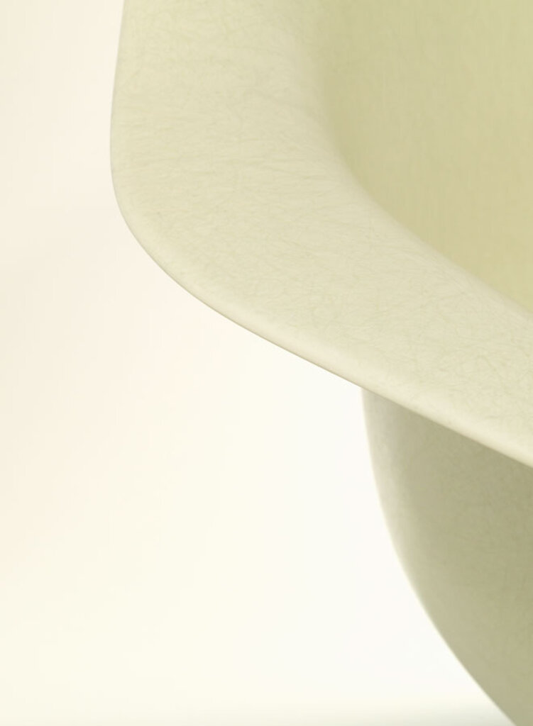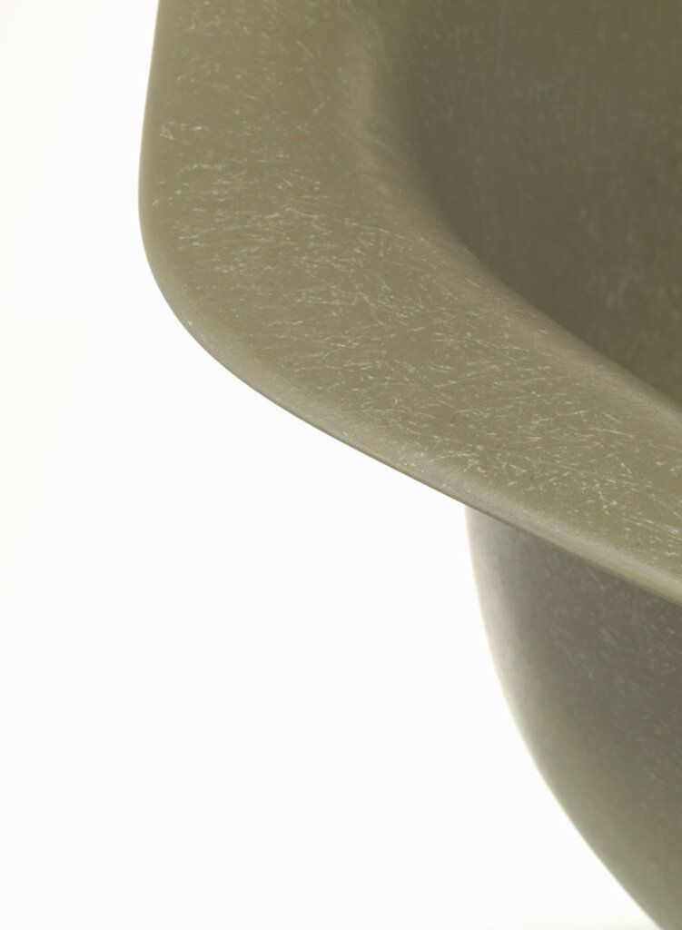 With the debut of this revolutionary design, Charles and Ray Eames introduced a new furniture typology that has since spread around the globe: the multifunctional chair whose shell can be joined with a variety of different bases. One model has always stood out in this large family of chairs: the Rocking Armchair Rod Base (RAR). The fibreglass version of the organically shaped RAR shell features the lively texture that is a hallmark of this material. The fascination of fibreglass lies in its irregular surface, whose clearly visible fibres make it appear almost like a natural material.