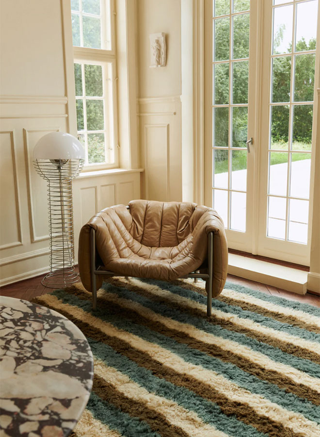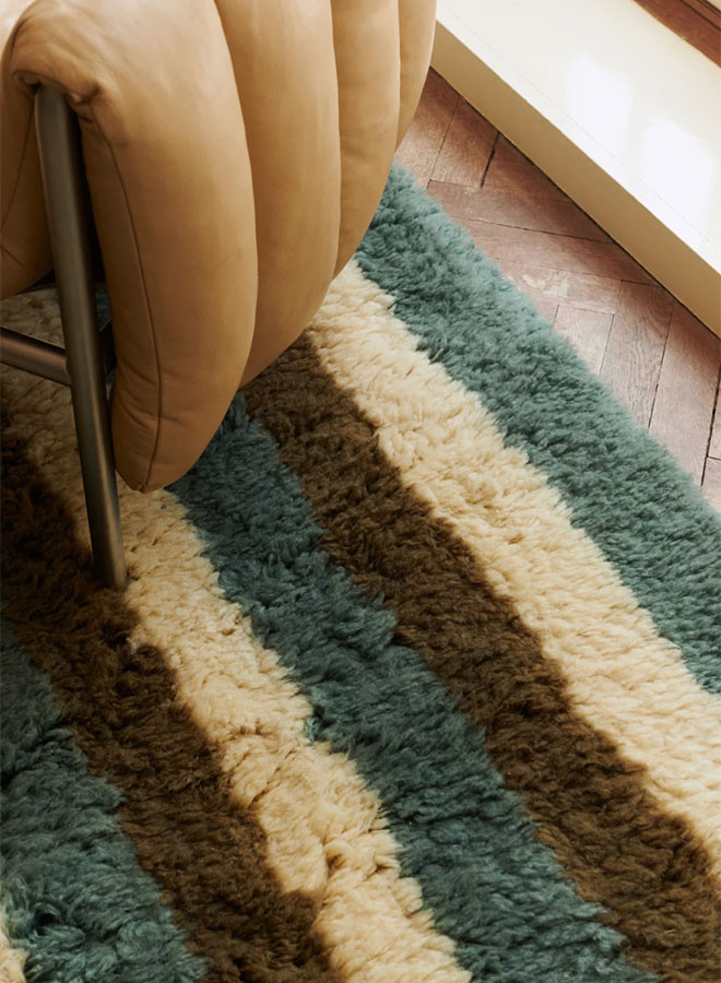 This rug is part of Evelina Kroon’s second collaboration with Layered, where she once again brings her bold graphic compositions into expressive, painterly textiles. The collection features five handwoven rya rugs inspired by the historic Scandinavian rya tradition, which dates back to 15th century Norway.