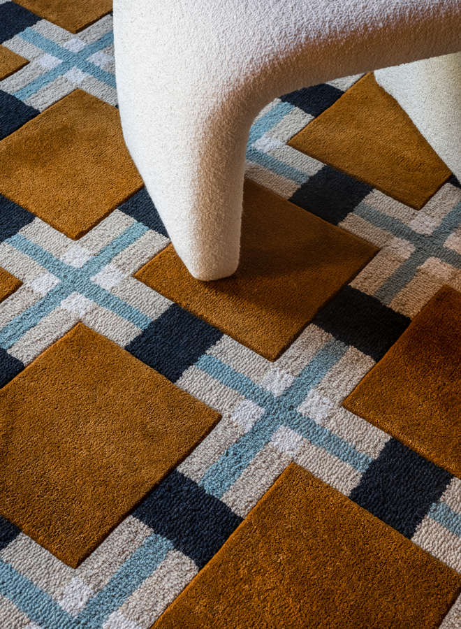 In collaboration with renowned Scandinavian artist Evelina Kroon, Layered introduces a collection that explores the boundary between art and interior design. With references to traditional female craftsmanship, four rugs are presented that balance tight graphic expression with a color palette that dares to challenge. The result is a collection that conveys both timelessness and a confident modern statement at the same time.