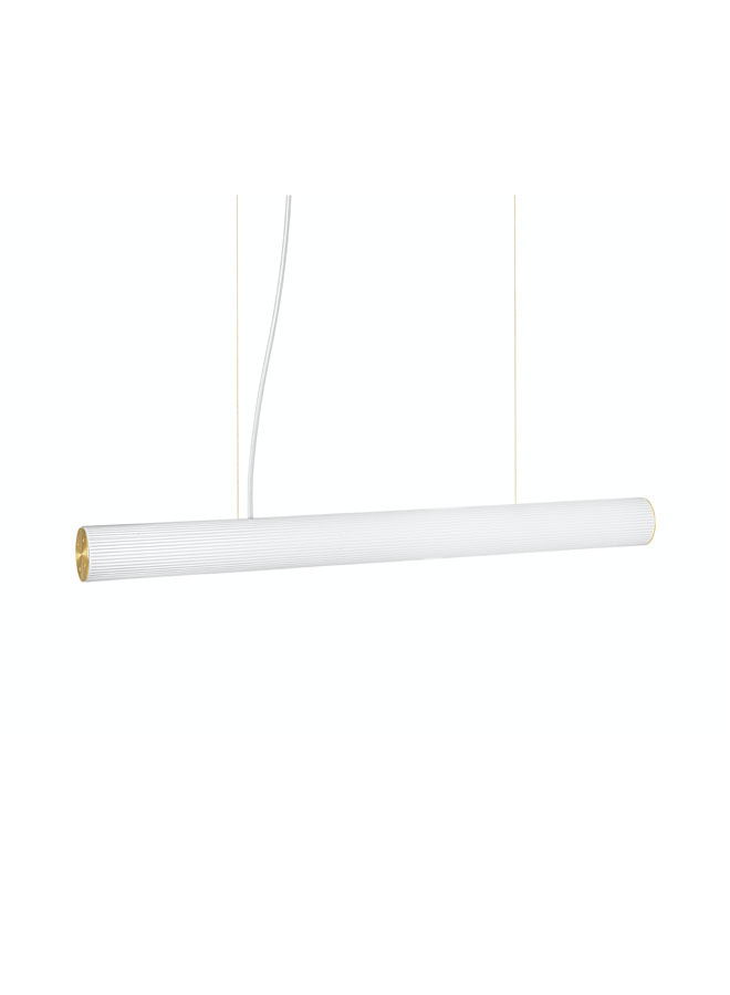 Fusing textural complexity with modern simplicity, the Vuelta Pendant features cylindrical translucent glass with a distinct rippled surface and brushed metal finishes. With an LED light source that emits a soft, diffused light, the Vuelta Pendant comes with an adjustable dimmer remote for ultimate ambiance control. Use the pendant on its own, or hang multiple lamps in a row for a bright, uniformed statement.