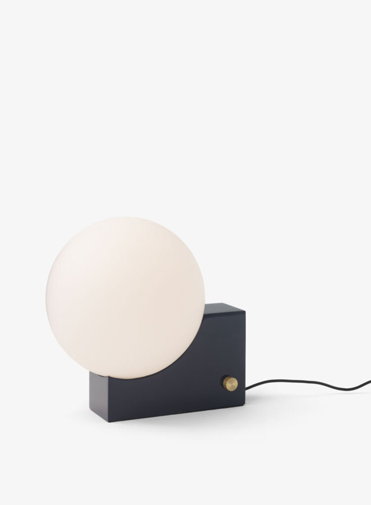The Journey lamp is a lovely merging of two classic geometric shapes, the sphere and the rectangle. The round, opal glass shade is reminiscent of the moon, with a new dimmer feature to enhance your mood and sense of well-being.Journey is both a table lamp and a wall lamp, with subtle colour combinations that make it easy to place anywhere. There is the mirrored chrome base with a chrome dimmer for a monochromatic look. A matt black base with a brass dimmer. And a clay-toned base with a brass dimmer. Whether the moon is full or not, the intention is for you to enjoy the design and all the moods you can create.
