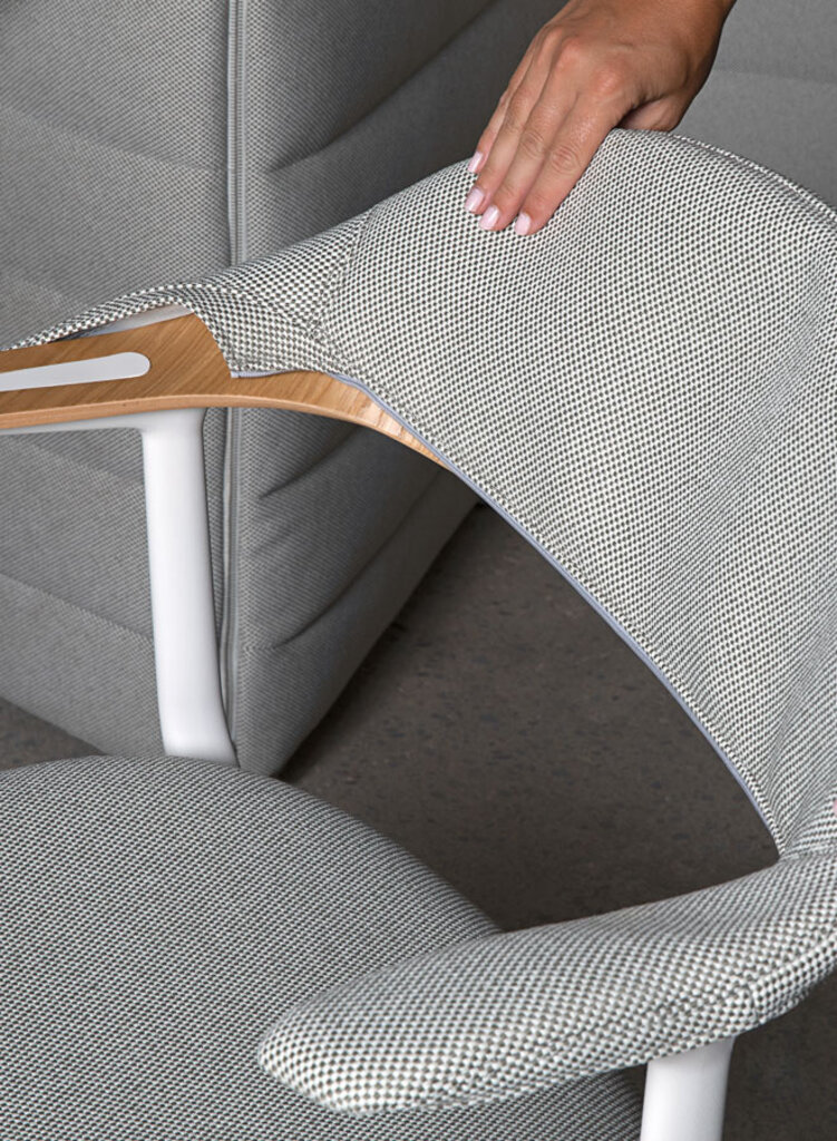Mynt is built for sustainability and longevity with user-replaceable parts like upholstery, glides, and castors, and service-replaceable seat and backrests made of recycled plastic or wood. It’s made from up to 86% recycled materials, 99% recyclable, and features V-Foam—the first economically recyclable polyurethane foam, developed by Vitra and BASF.