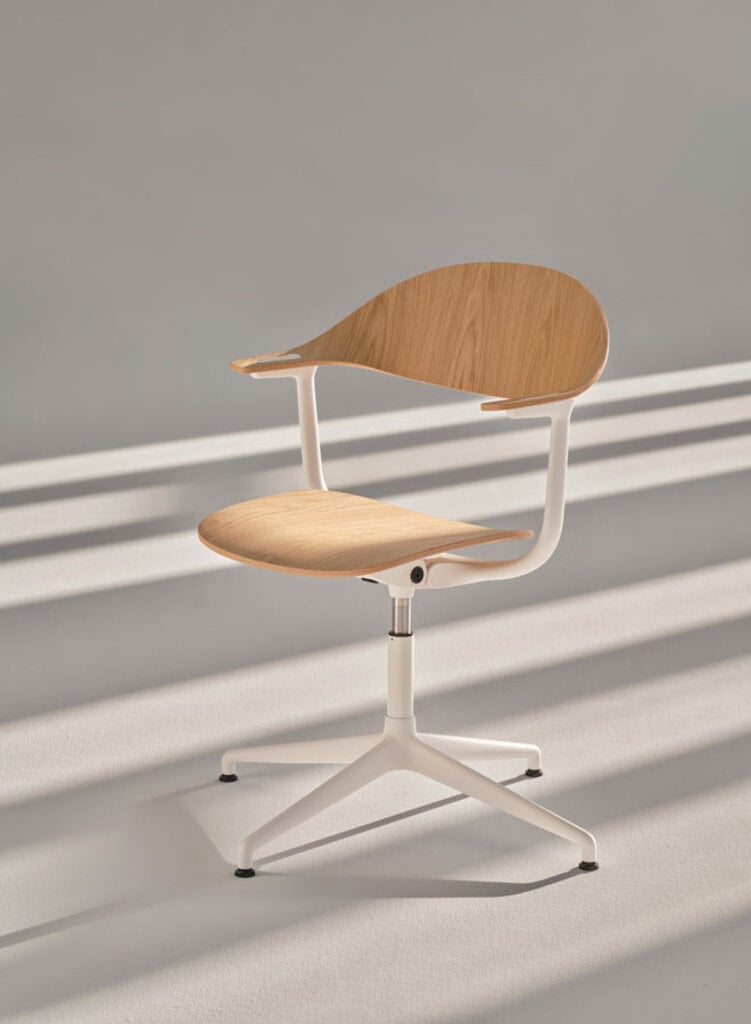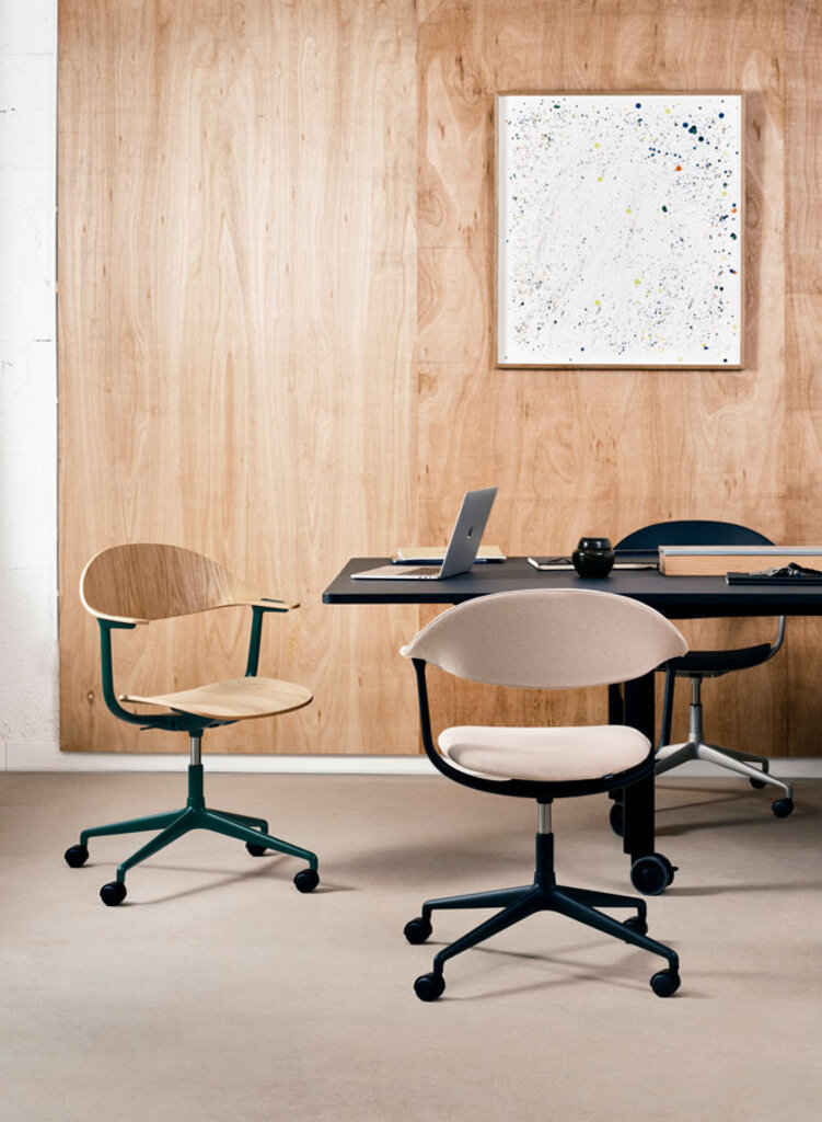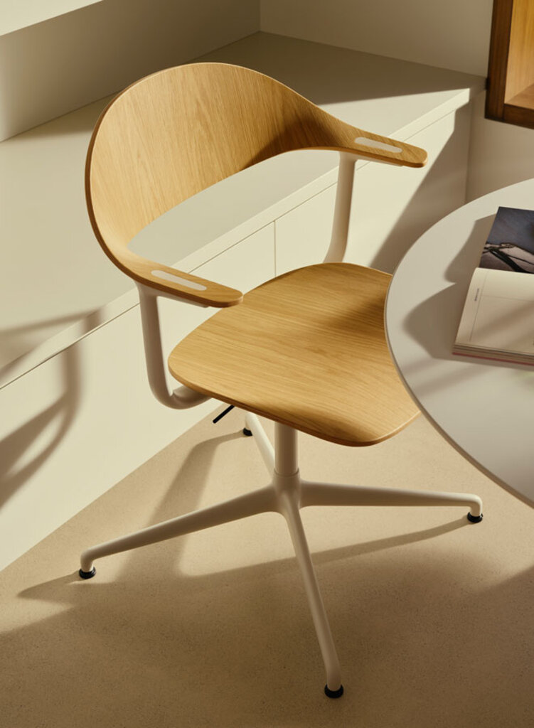 The universal chair Mynt by Erwan Bouroullec combines the appealing home-like aesthetic of a studio chair with a completely new dynamic sitting experience.