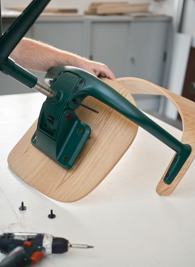 The core element is its patented mechanism, which is activated by body weight and tilts forwards or backwards depending on shifts in the sitter's position – with the seat moving independently of the backrest. The movement resistance automatically adapts to the user's weight – only the height has to be adjusted.