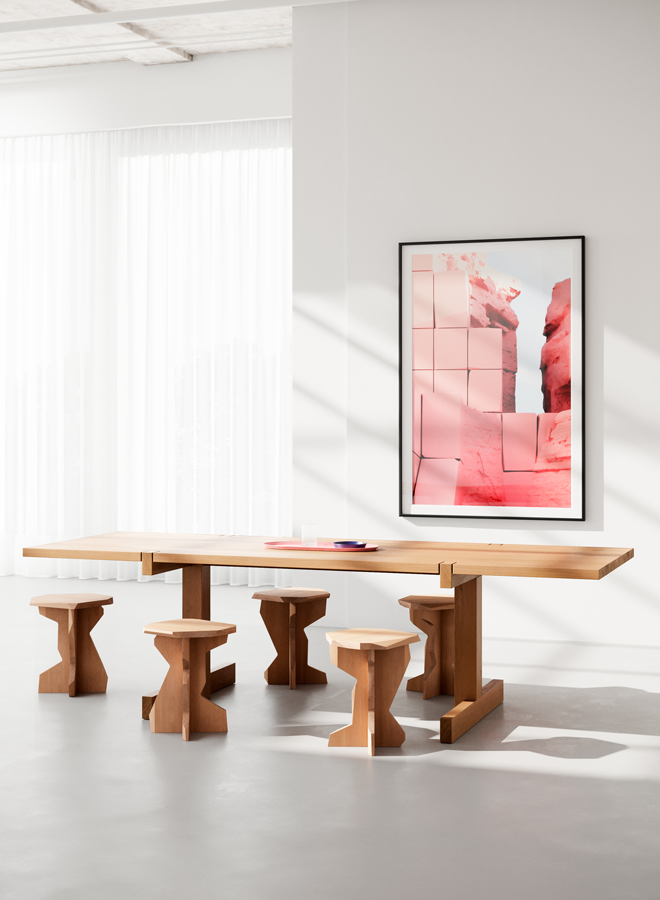 RICHTER is an archetypal table, handmade in the south of Germany in the Swabian Alb. Immediately, the design language of RICHTER is reminiscent of a traditional workbench. Finely crafted details and milling give the design a contemporary reference and sophistication.