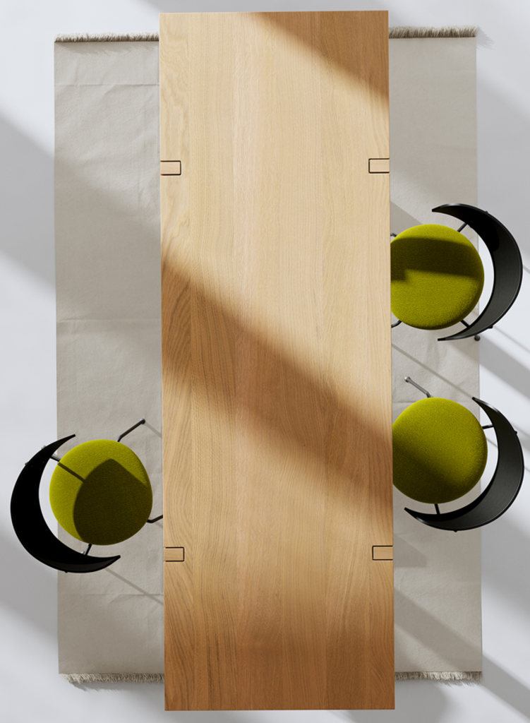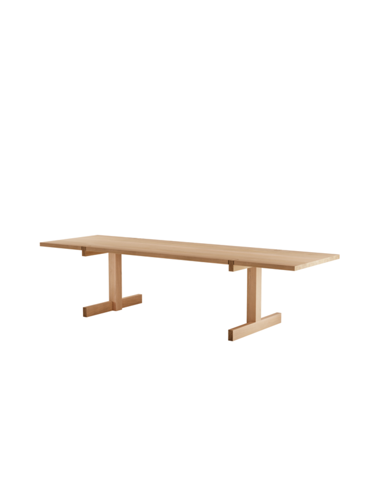 The solid oak beams come from sustainable forestry in Germany and Austria. The wood finish with wax creates a velvety feel, natural beauty and solid robustness that can be repaired again and again. The pure aesthetics of RICHTER create space for a new dining culture as well as for sprawling house parties with friends and family when it gets late. Dancing on the table - why not? Every RICHTER Table is handcrafted, a unique piece, functional and expressive. Custom-made variants in extreme sizes are possible at any time and make RICHTER an attractive object for private or public spaces. RICHTER is an innovative tradition and a statement of local craftsmanship. Built to last.