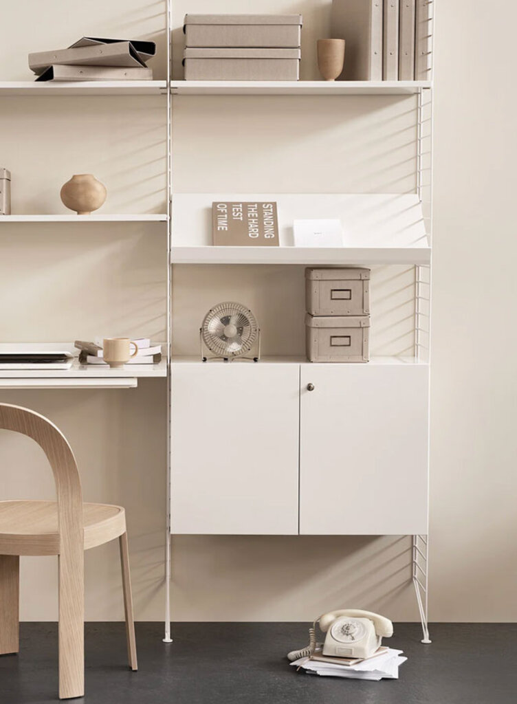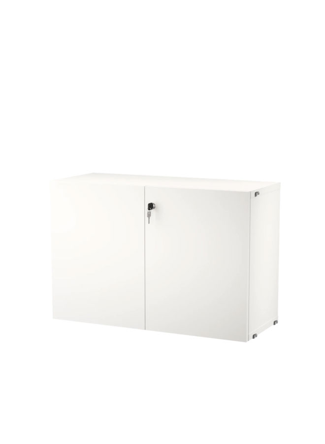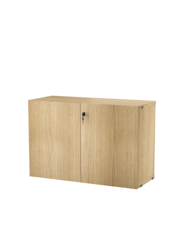 The Cabinet with lock can easily be combined with floor panels from the String System to create an optimal solution for your workspace, where you can store all your binders, cables, papers, and similar items. The doors are equipped with push-open fittings, and the right-hand door is lockable, two keys included. It has two inner shelves that can be adjusted to any height.