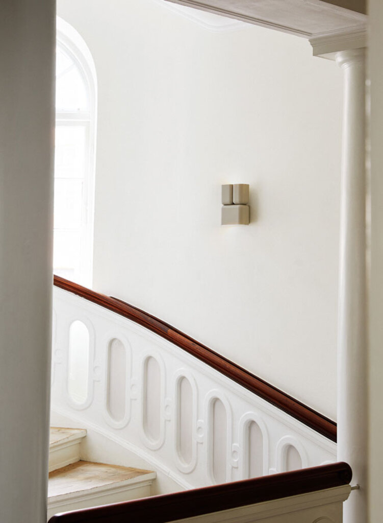 Intended as a work of art, the Tabata lamp unites an industrial aesthetic with a warm light. Tabata was born after designer Luca Nichetto became intrigued by the idea of creating a lamp that appeared to float. Comprised of three interconnected metal modules, Tabata can be oriented by the owner to direct the diffused light source as desired.