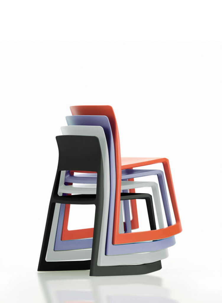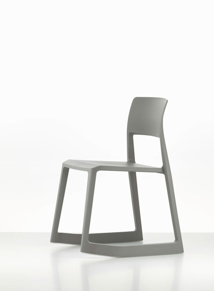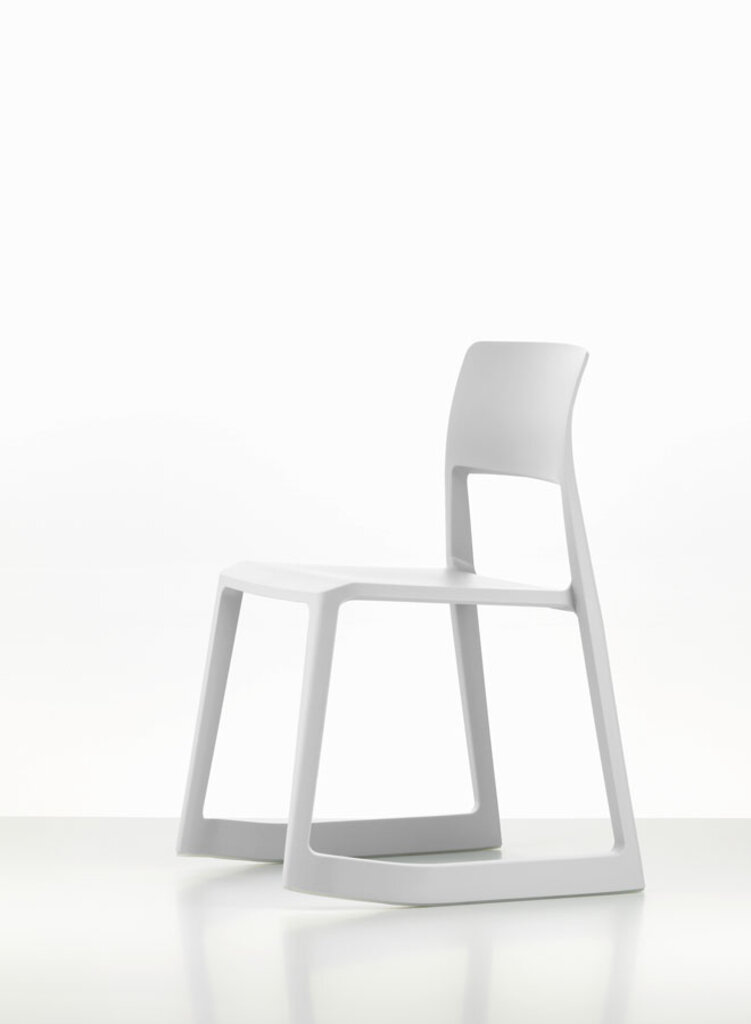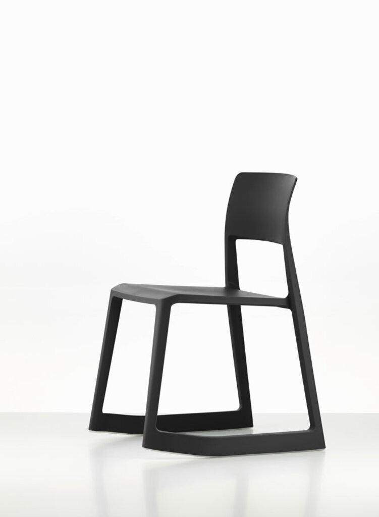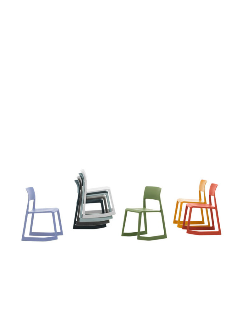 Tip Ton by Edward Barber and Jay Osgerby is more than just an all-plastic chair with a distinctive contemporary design. Thanks to an alternative forward-tilt position, it also provides ergonomic seating. Tip Ton comes in a large range of colours. It can be stacked up to 4 chairs, is 100 % recyclable and is suitable for outdoor use.