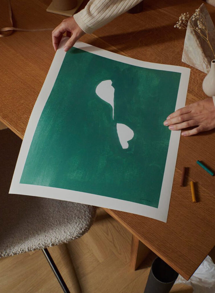 Printed on 265 g natural art paper with a matt, uncoated finish and lightly textured surface, that ensures a rich and vibrant display of colours. Printed in Denmark. This art print comes with a white border around the motif. The sizes displayed, indicates the actual size of the art print including the white border.